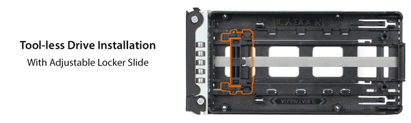 ToughArmor MB834MK-B V2 oferuje kompletnie beznarzędziową instalację, która obejmuje także bardzo duży i wysoko wydajny aluminiowy radiator. Nie ma potrzeby korzystania z żadnych narzędzi przy jego instalacji lub usuwania. Użyj po prostu swoich kciuków, aby wcisnąć dwa przyciski pod tacą, a radiator bez trudu wyskoczy. Aby go ponownie zainstalować, przykryj nim tackę i delikatnie dociśnij w dół, a zostanie bezpiecznie zamocowany na swoim miejscu.
